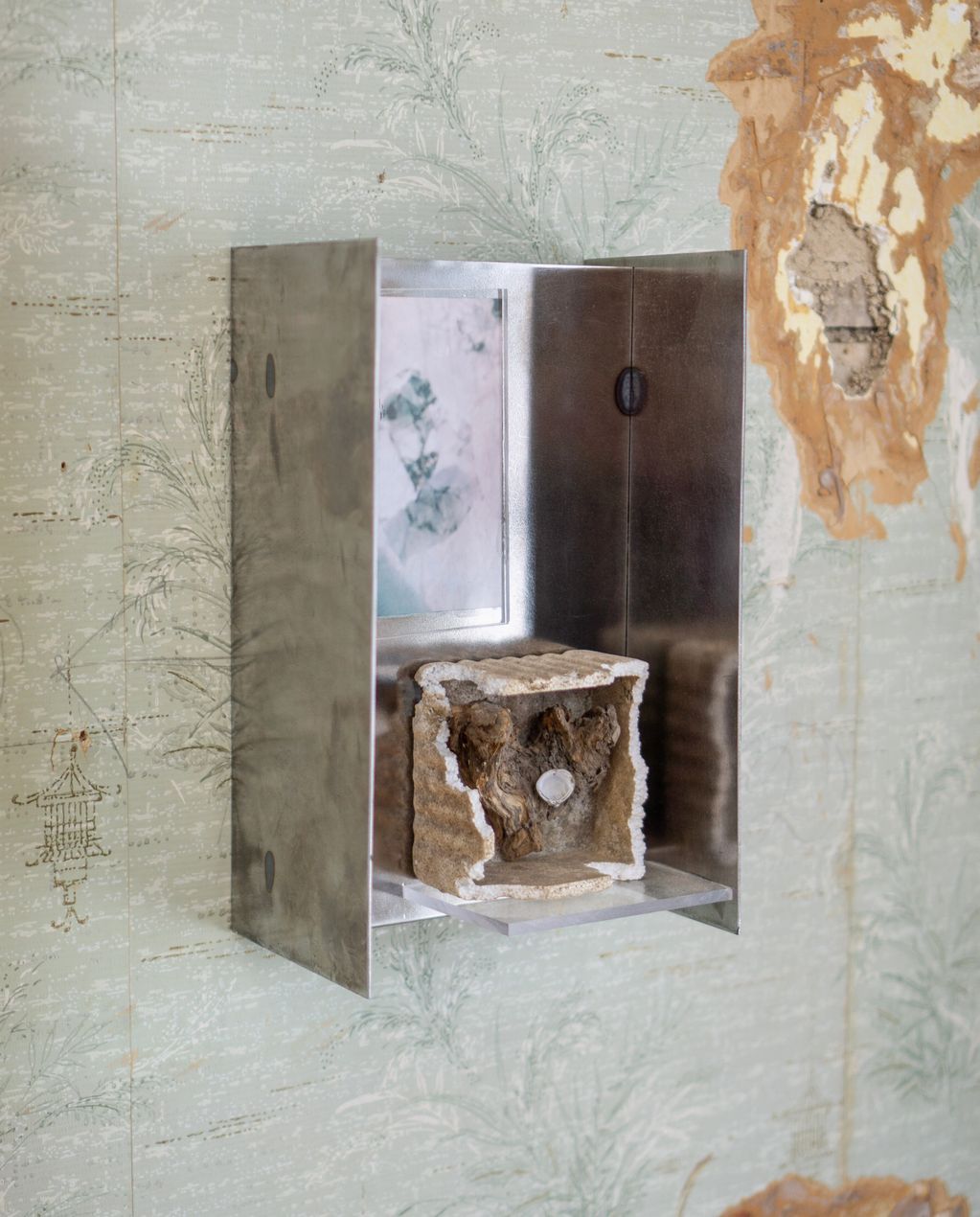 Steel, acrylic, inkjet print, styrofoam, shell, rootball