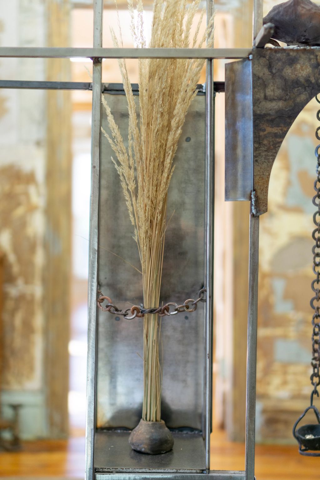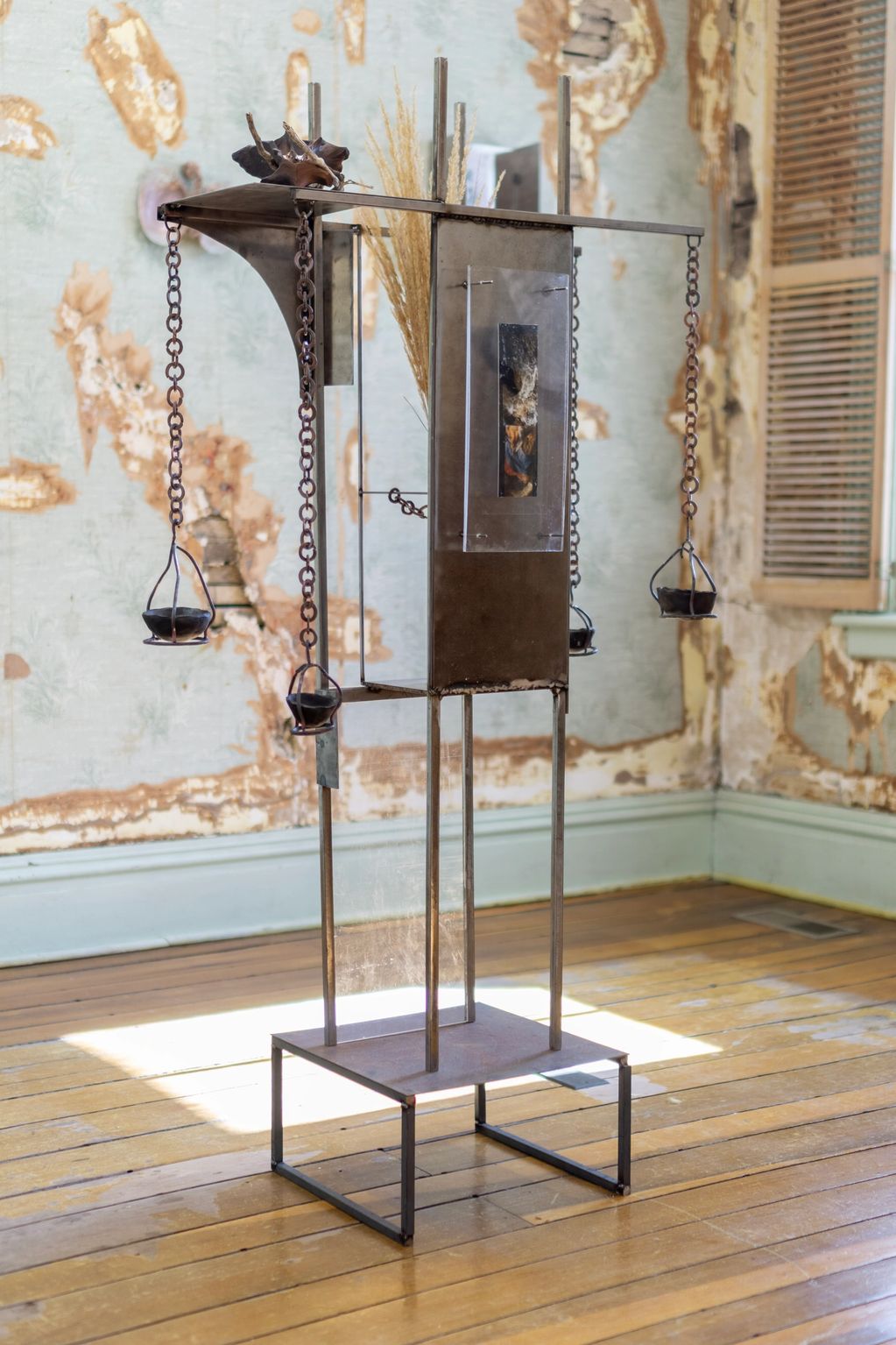 Steel, copper, wild clay, urban fruiting grass, root ball, bismuth, monoammonium phosphate, copper sulfate
