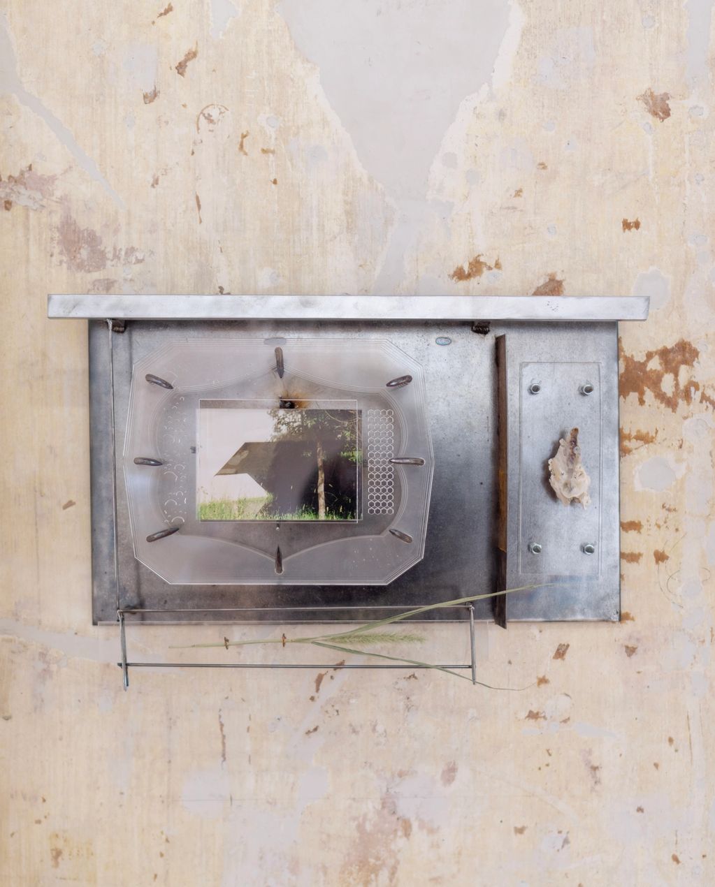 Steel, copper, aluminum, acrylic, ink jet print, urban fruiting grass, shell